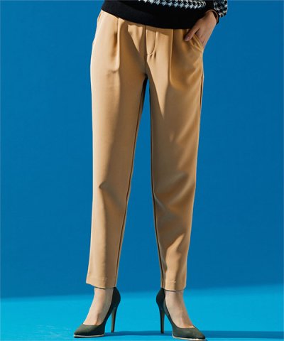 裾がすぼまるテーパードシルエットで、すっきり見えを叶えるおしゃれパンツ。微ストレッチ素材がはきやすい。ウエストタックで腰まわりをカバーしてくれるのも嬉しい。※この商品はウエストが大きめの為1サイズ下のサイズをおすすめ致します。