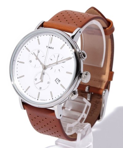 フェアフィールドコレクション初となるクロノグラフモデル。クリーンで洗練されたデザインを保つように時計中央に寄せて配されたクロノグラフや、インデックスのバーや時分針に丸みを持たせるなどまとまったデザインがシャープな印象を与えます。