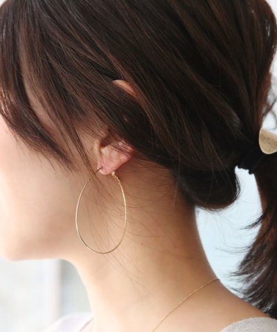 緩やかなカーブを描いたドロップフープピアス。ふんわりとした丸みが女性らしさをぐっと引き上げてくれますよ。大きめデザインがお顔周りをすっきりとした印象に。控え目な存在感でオン/オフ問わず使える優れもの。デイリーユースにおすすめなアイテムです。