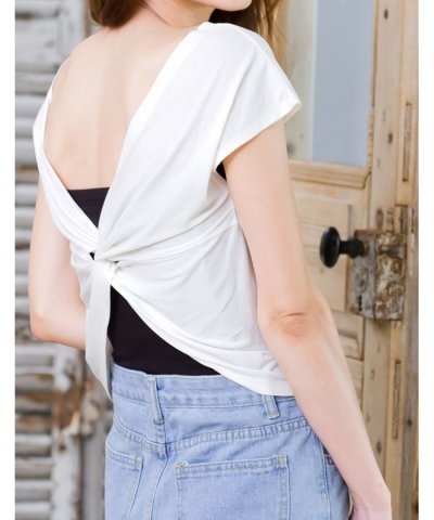 深く開くバックラインが、首周りを綺麗に見せ女性らしい雰囲気に。