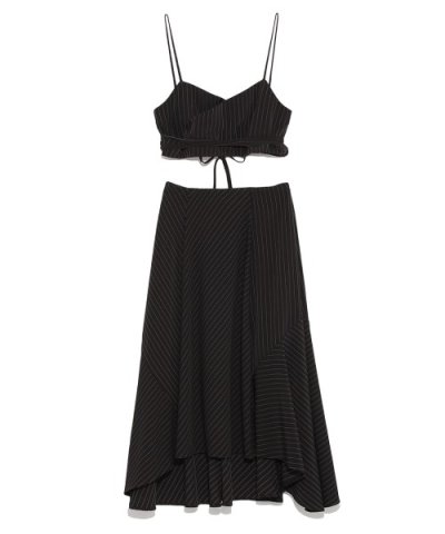 ピンストライプ柄の上品なキャミソールとスカートのSET。ボトムにふわりとボリュームを持たせた分、トップはコンパクトにまとめてバランスを上手く引き算しました。ウエストへくるくると巻き付けた共布リボンは、ほのかな甘さが好印象です。