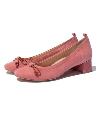 つま先をスクエアトゥ、ヒールはチャンキーヒールにゴールドの金具をアクセントに加えた他にはない大人バレエシューズ。クッション性のある中敷きを敷き、履き口にはギャザーを入れホールド感ある仕様に。