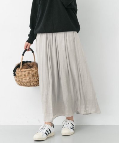 冬場ニットに合わせるのにぴったりな薄手の質感のマキシスカートが登場。艶のある素材と軽い仕上がりなので、歩くたびにさらさらと風になびき気分を上げてくれます!またウエストゴムと肌あたりの良いつるつるの生地でストレスフリー◎楽ちんとおしゃれを同時に叶える1枚はもっておきたい優秀アイテムです。