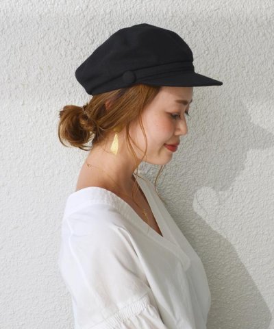 シンプルなウール素材のマリンキャップ。かぶったときの決まりがよく、普段のコーディネートにも取り入れるだけで今年らしいお洒落な雰囲気に。