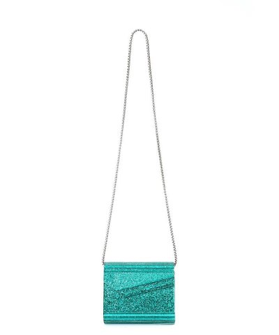 ターコイズのスパンコールがインパクトのあるミニクラッチバッグ。上からコーティングされているので服を傷つける心配もありません。同系色のコーデでまとめれば落ち着いた雰囲気に。結婚式の二次会など、パーティーシーンでもご利用いただけます。