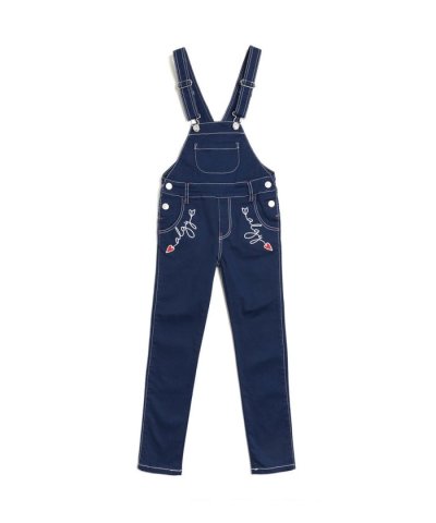 ○ニコプチ10月号掲載商品○ALGY(アルジー)のパンツ「ビッグロゴスキニーサロペ」は、流行に敏感な女のコの日常を可愛く、甘く彩るデザインが人気!着回し抜群で一枚あると便利!
