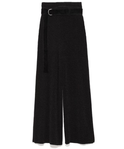 モールニットが独特な表情を見せるパンツ。落ち感のあるフレアシルエットで、美脚効果バツグン。ウエストにベロアベルトを備えているから、快適なフィット感に調節でき、トップスインもサマになります。