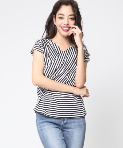 フロントがカシュクール風デザインになったカットソー。柔らかく肌触りの良いカットソーは綿100%で着心地抜群!エレガントなドレープデザインやウエストがシェイプされたシルエットが女性らしさをグッと後押ししてくれます。トレンドのカラースカートやワイドパンツなどボリュームのあるボトムと合わせるとバランス良くお召しいただけます。カラーはベーシックで使いやすいホワイトと秋まで使える大人シックなブラウン、カジュアルスタイルにも使えるボーダーの3色をご用意。カラーによって印象が違って見えるので色違いで揃えてもGOODですね♪